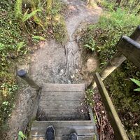 Wanderausrüstung, rutschfeste wasserdichte Schuhe. Stöcke und ev. Gamaschen wegen Gatsch nach Regenfällen. Regenschirm und Compeed