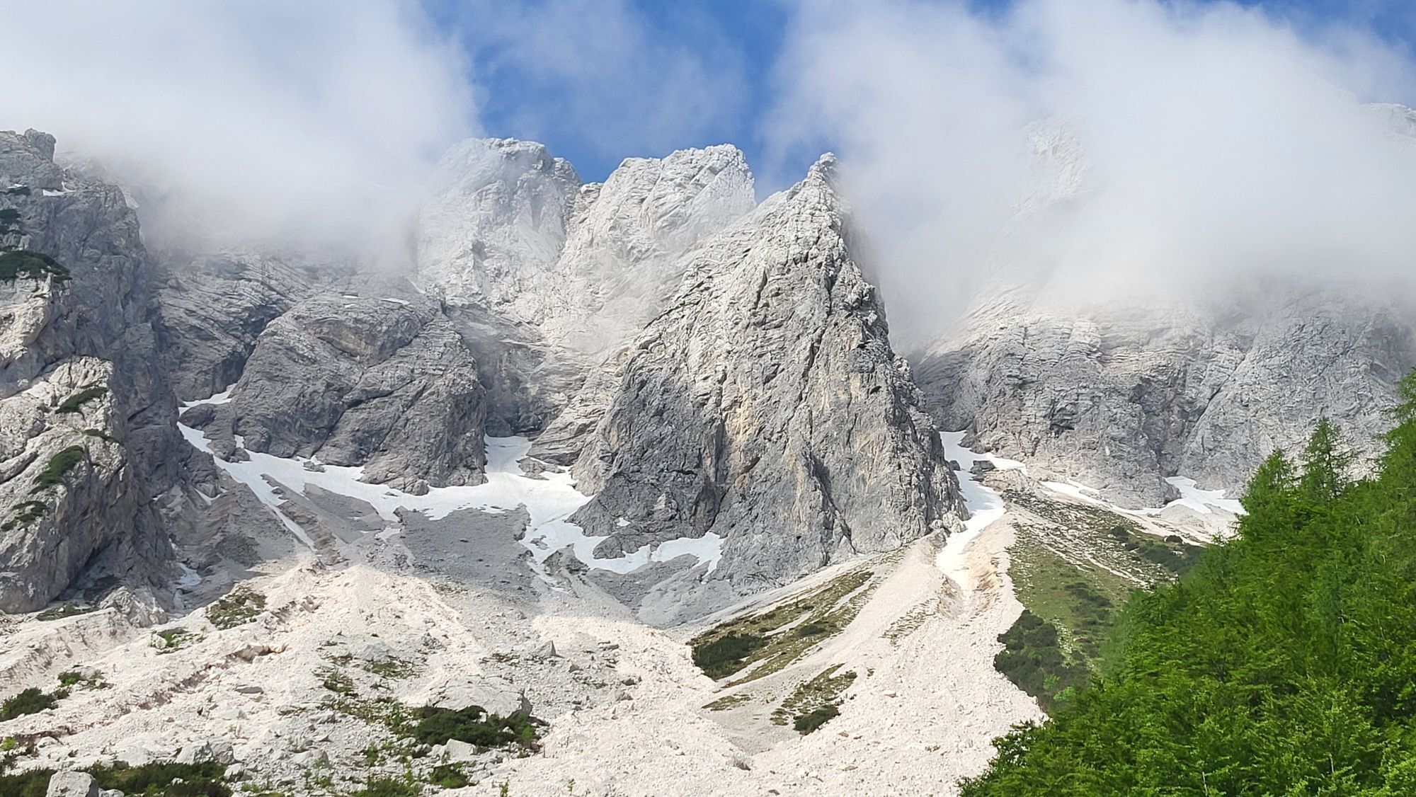 Vom Mitte April - Mitte November darf man hier die Staatsgrenze an den dafür gekennzeichneten Stellen überschreiten und zu den Schutzhütten auf slowenischem Gebiet wandern. (Reisepass oder Personalausweis mitnehmen).