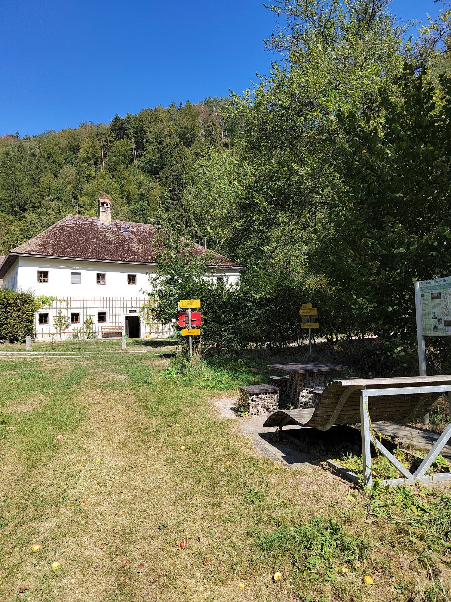 La valle superiore del Danubio – con oltre 90 km (!) una delle gole più lunghe del Danubio. In questa profonda valle si trova il punto di partenza – il porto fluviale di Untermühl. Oggi poco appariscente, un tempo era importante: punto di rifornimento per la navigazione sul Danubio, punto finale del canale di trasporto Schwarzeberg, ...! Per riscaldarti pedali piano nella romantica grande valle Mühl fino a raggiungere la nascosta centrale idroelettrica di Partenstein. Qui inizia uno straordinario surfing laterale attraverso meravigliose foreste di gole sul pendio! La prima salita (180 metri di dislivello) passa su una impegnativa strada di manutenzione lungo i condotti della centrale elettrica fino all'altopiano dove si trova il borgo contadino di Ramersberg. Complimenti! A tutta velocità scendi su un ripido sentiero boschivo nella profondità della grande valle Mühl - fino al mulino Ebenmühle. La seconda salita (280 metri di dislivello) sale su una strada storica in parte impegnativa fino all'altopiano opposto. In cima pedali solenni attraverso una campagna ondulata fino a Kirchberg ob der Donau e la monumentale torre panoramica „Danubio sulla montagna“ (613 m). Complimenti – metà del surfing laterale! Magnifica vista panoramica a 360° sul Mühlviertel, la valle del Danubio, il Sauwald, ... fino alle Alpi. Per inciso, qui sei sulla più alta elevazione che si erge direttamente dal corso del Danubio. La bici scorre fluida ancora un breve tratto fino al bordo della gola del Danubio, poi la ripida e impegnativa discesa lungo il pendio della valle del Danubio, su sentieri boschivi a tratti viottolosi, richiede piena concentrazione. Una piacevole rigenerazione è garantita da una rilassante crociera fluviale lungo il Danubio fino a Obermühl. Ai ciclisti attenti salterà all'occhio il contrasto fra il magazzino storico di cereali all'inizio del paese e l'architettura contemporanea del resto del paese. La ragione: il nucleo storico è stato sommerso dalle acque del bacino per la centrale di Aschach. All'inizio della moderna chiesa „Gold“ inizia la terza salita (260 metri di dislivello). Una strada lastricata abbandonata conduce decisa attraverso il ripido versante della piccola valle Mühl – la vecchia strada del sale. Un tempo il sale leggendario del Salzkammergut veniva trasportato qui via nave fino a Obermühl e poi portato a dorso di mulo fino in Boemia. Per i filosofi della bici: „oggi le nostre maglie sono impregnate di sale“ ;-) All'altopiano si raggiunge il punto di svolta nel borgo contadino di Untered. Complimenti! Breve pedalata rigenerativa culturale e poi, su sentieri impegnativi, si scende il ripido versante della valle fino alla profondità della piccola valle Mühl - fino al Bruckwirt.
