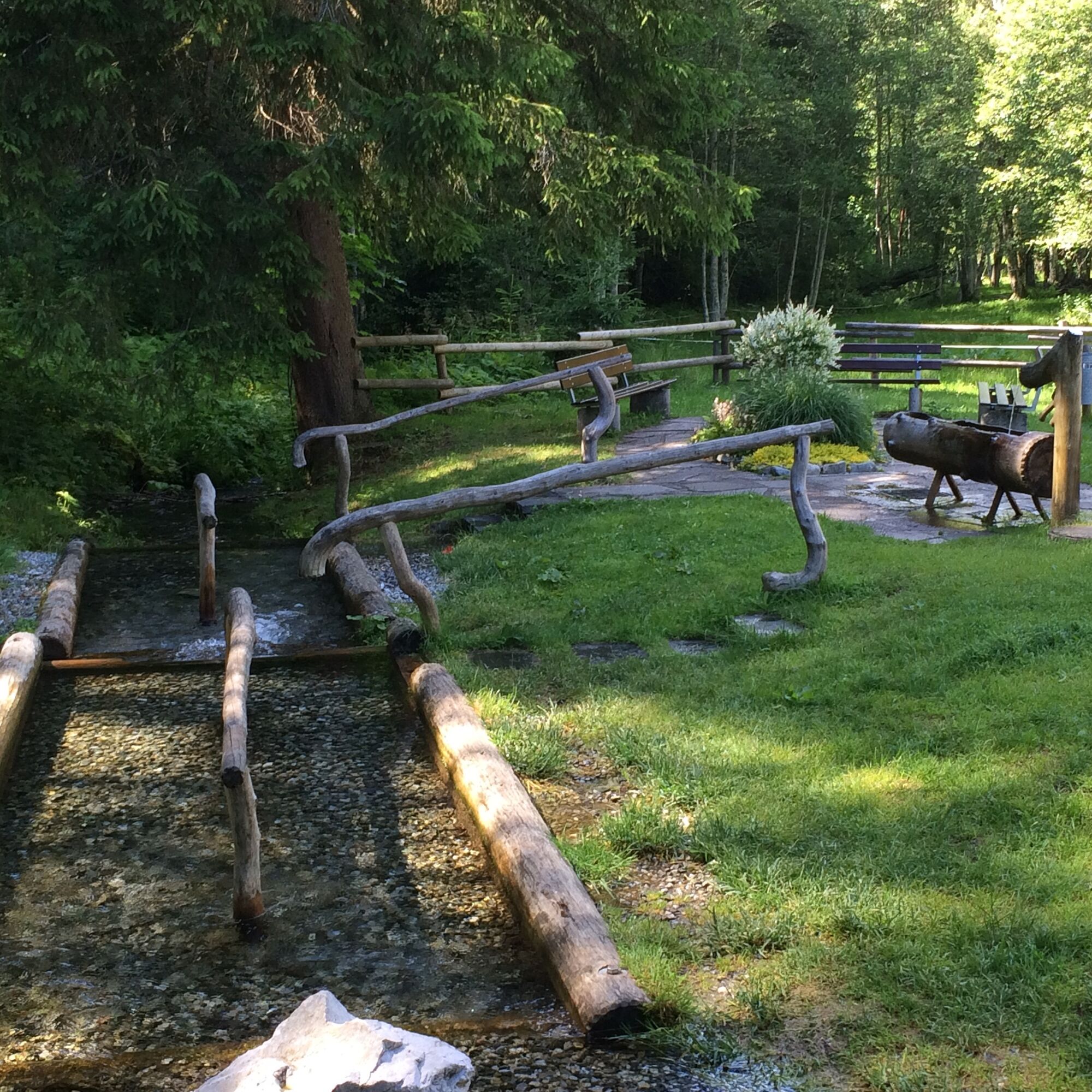 Attraversi il ponte in legno e prosegui fino all'area Kneipp. Qui attraversi di nuovo un ponte e torni sul percorso ciclabile in salita fino al parco divertimenti Mountain Beach.